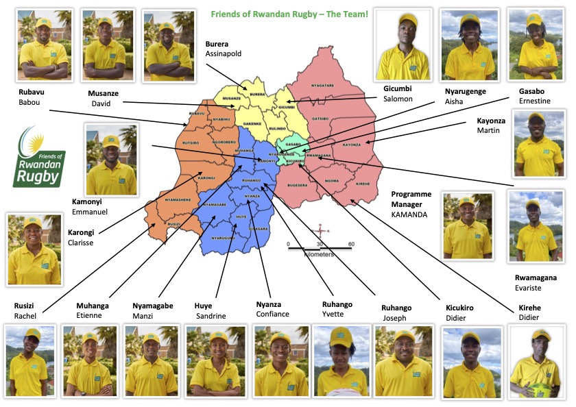 We currently have 20 volunteer rugby development officers working in various Districts throughout Rwanda.
